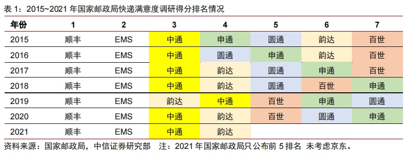 其二,自身角度来看,近年来中通快递领先优势稳固,公司力求在服务质量、快递件量、利润增长等方面实现最佳平衡,由此换来了市场的正面反馈,这亦令其可以享受较通达系单票高0.1-0.2元的服务溢价。
