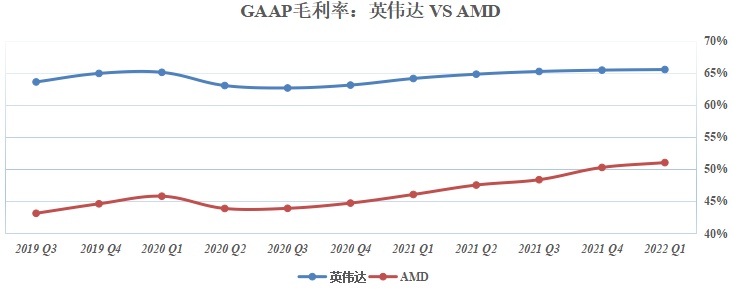 同属于Fabless(无晶圆厂)经营模式的竞争对手AMD(AMD.US)虽然近几年逐步蚕食英伟达在独立显卡领域的份额,但同期毛利率水平仍然无法与英伟达相提并论。