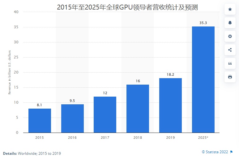 根据金融咨询与统计公司Trefis公布的统计及预测数据,预计2025年全球处于领先地位的GPU供应商营收总额在2025年有望达到353亿美元,这些领导者包括英伟达、AMD以及英特尔等GPU龙头企业。