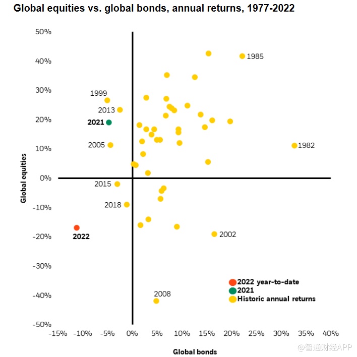 在宏观经济形势恶化的情况下,今年全球股市和债市出现了负回报(见下图)。