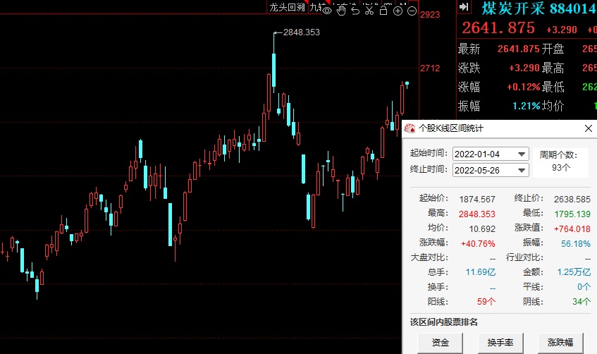 行情显示,截至5月26日收盘,煤炭开采指数今年录得40%的正收益。不仅离前高仅一步之遥,还大幅跑赢沪深300同期60个百分点。可谓全市场最牛逼的仔。