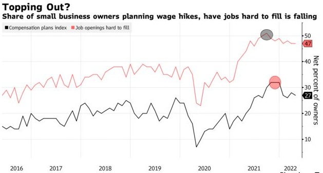 到目前为止,雇主已经成功地将更高的劳动力成本转嫁给了消费者,但这可能正在到达一个临界点,即更高的价格会抑制需求。这正是美联储在控制美国40年来最严重通胀的全面使命中所希望看到的。
