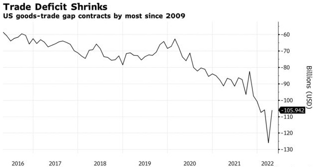 智通财经APP获悉,美国4月份商品贸易逆差出现2009年以来最大降幅,原因是出口升至创纪录水平。美国商务部周五公布的数据显示,美国贸易逆差继3月份创下纪录水平后,上个月收窄15.9%,至1059.4亿美元,而预期为逆差1148亿美元。