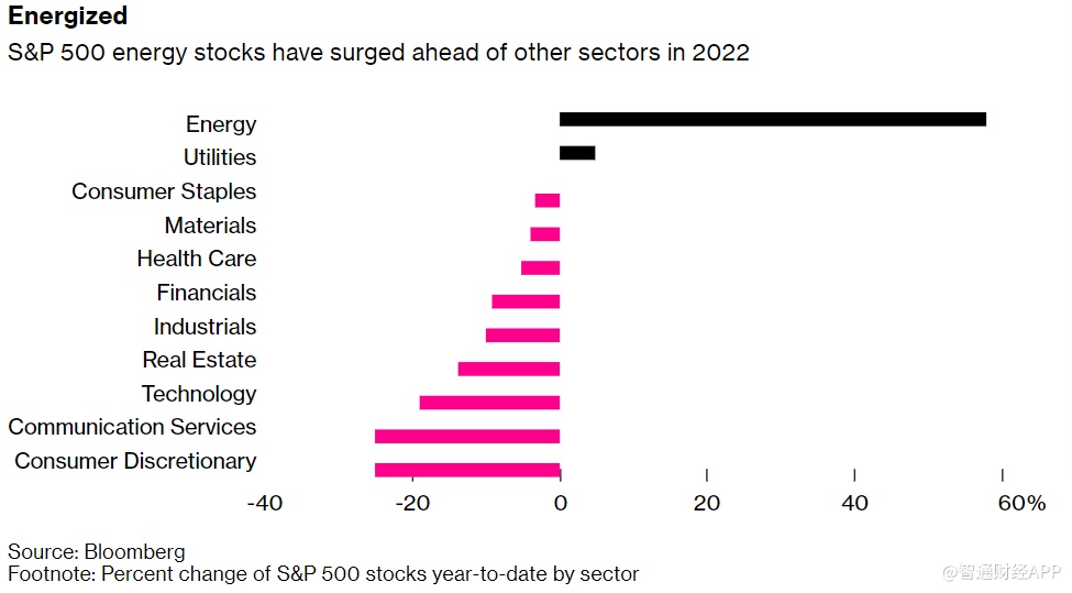 能源股则逆势上涨,因俄乌冲突刺激油价飙升。这使得能源股成为美股各大板块中最大的赢家,年内涨幅达58%。