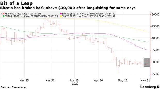 智通财经APP获悉,由于投资者和策略师表示比特币正显示出触底反弹的迹象,比特币在周一站上3万美元,并创下两周以来最大涨幅。