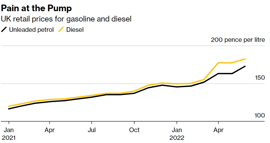 智通财经APP获悉,上周末,加油站汽油和柴油价格飙升至新的纪录,给英国司机带来了更多的经济痛苦。据英国皇家飞行俱乐部(RAC)汽车组织称,上周六,英国柴油平均价格达到了令人瞠目的每升182.71便士(合2.31美元),这使得一辆家庭汽车的燃油成本有史以来首次超过100英镑。与此同时,无铅汽油周日飙升至172.73便士。周日,英国平均柴油价格小幅下跌,至每升182.59便士。