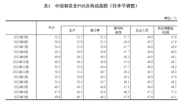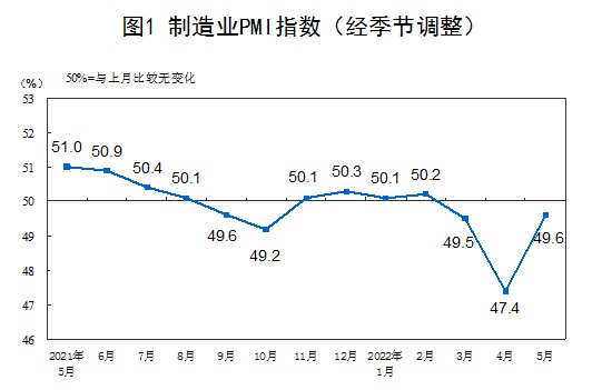 智通财经APP获悉,5月31日,国家统计局公布5月中国采购经理指数运行情况。5月份制造业采购经理指数(PMI)为49.6%,虽低于临界点,但比上月上升2.2个百分点,制造业总体景气水平有所改善;非制造业商务活动指数为47.8%,比上月上升5.9个百分点,非制造业景气水平明显改善;综合PMI产出指数为48.4%,比上月上升5.7个百分点,表明我国企业生产经营景气水平有所恢复。