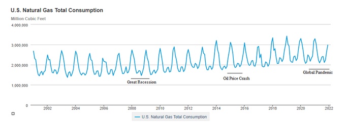 事实上,正如股神巴菲特在过去押注天然气资产所表达的理念一样,该领域的需求依然具有显著的弹性。从上图也可以看到,天然气需求整体仍保持逐渐上升的趋势,上下波动则是因为季节性因素。