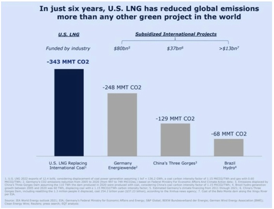 除此之外,EIA还在一份中报告中指出:“在过去15年中,美国二氧化碳排放量的降低在很大程度上是由于发电结构从煤炭转向天然气的结果。“国际能源署(IEA)同样指出,美国液化天然气(LNG)替代国际煤炭在减排方面的贡献超过了世界上任何其他绿色项目,如下图所示: