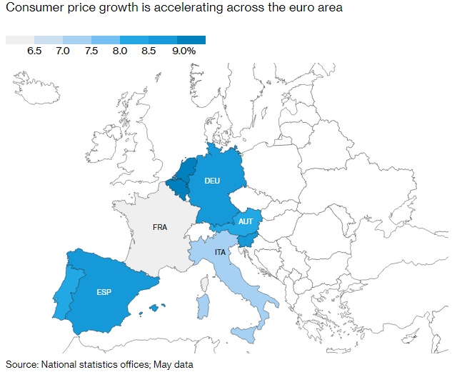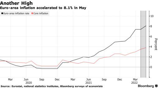 智通财经APP获悉,欧元区5月份消费者价格同比上涨8.1%,超过了市场预期中值7.8%,通胀水平再创历史新高。为应对欧元区19个成员国史无前例的物价飙升,欧洲央行或将进行十多年来的首次加息。不过关于欧洲央行以多快速度加息,欧元区内部出现了分歧。