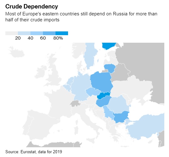 据了解,目前大部分管道运输的石油都是输送至德国和波兰,但这两个国家此前已经表示,无论欧盟采取什么行动,它们都将减少对俄罗斯供应的依赖。而如果这两个国家都坚持到底,加上海上禁运,到今年年底,俄罗斯对欧盟的原油销售总量将减少90%。