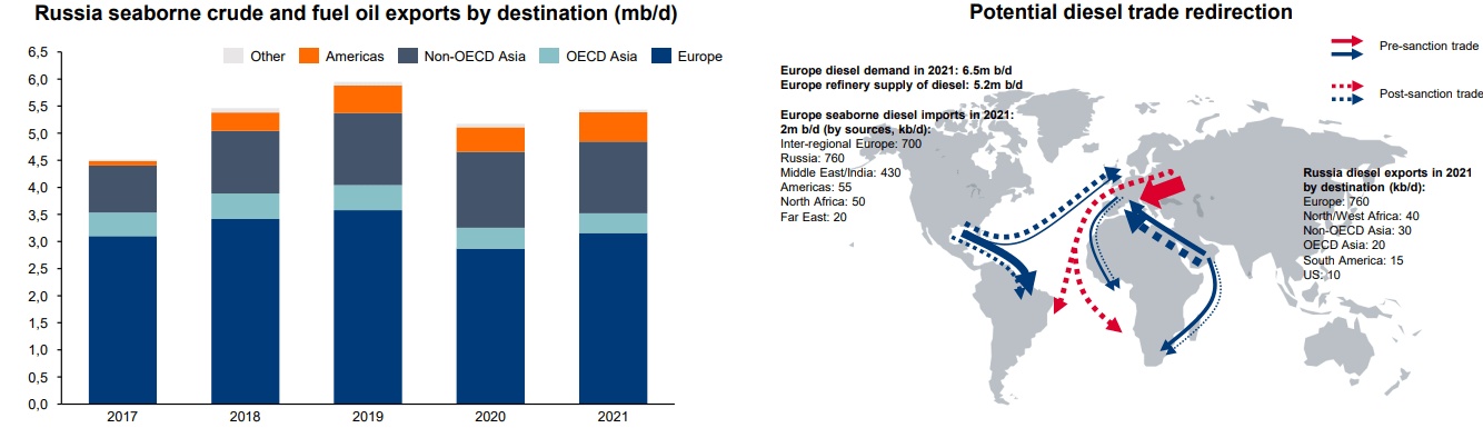 值得关注的是,俄乌冲突扰乱了原油和成品油的供应体系,也改变了贸易路线。