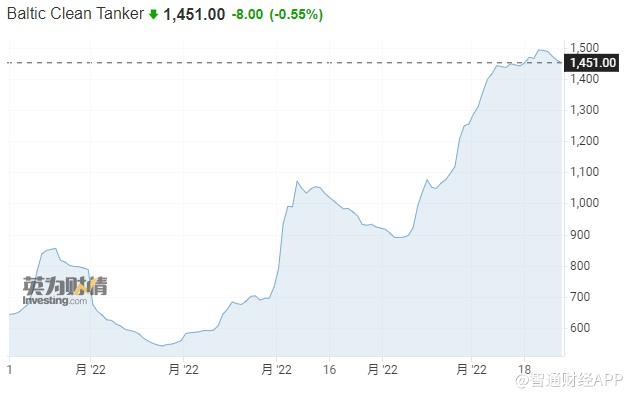 成品油价格高涨,也刺激了将成品油从生产过剩的地区运输到生产短缺的地区的运输需求,油轮运费持续走高。