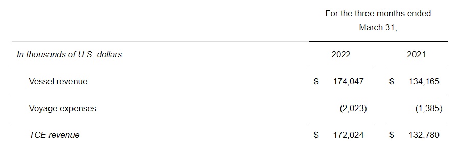 天蝎油轮指出,TCE收入反映了成品油轮市场的改善,特别是在一季度末,原因包括成品油需求改善、成品油海运需求回升以及俄乌冲突导致航运距离延长。相比之下,2021年一季度,原油和成品油的需求仍然很低,而且世界上大多数国家继续实施限制措施以控制病毒传播。