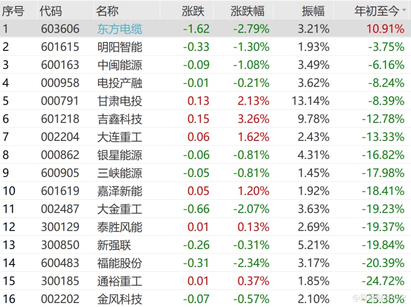 再看股价方面,自去年10月高点以来,多数新能源股票股价都出现大幅回撤,股价腰斩的比比皆是,在今年Q1业绩大幅增长的有力支撑下,年初以来明阳智能股价仅下跌3.75%,而金风科技累计跌幅达25.38%。