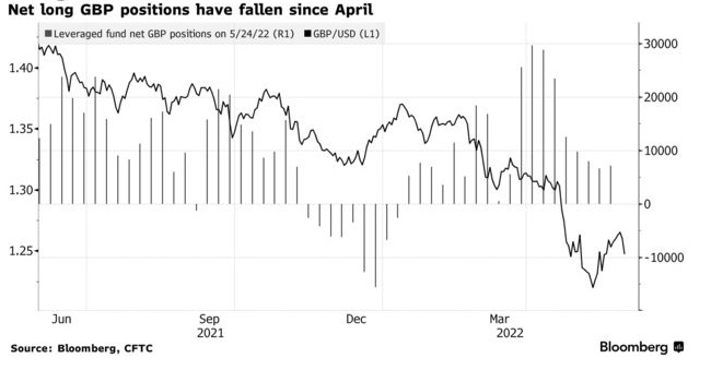 智通财经APP获悉,英镑5月上涨0.2%,2022年内已累计下跌约8%,是今年全球表现第三差的主要货币。英镑市场的情绪一如既往的黯淡,交易者正在削减英镑多头头寸。