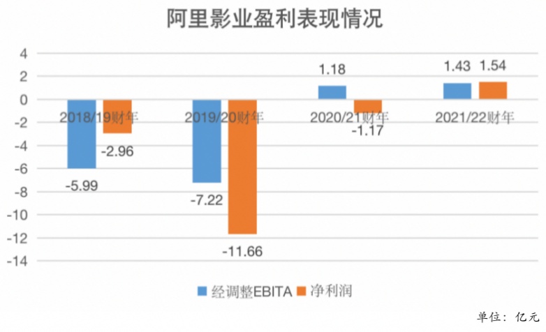 得益于阿里影业业务结构的多样化,以及运营效率的提升,2021/22财年公司的净利润达到1.54亿元,成功扭亏为盈;同期,经调整EBITA约为1.43亿元,较上一年度增长21%。