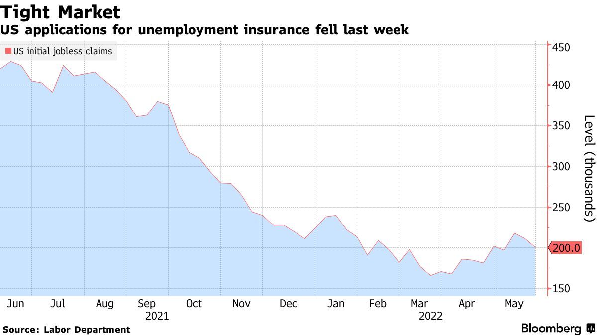 智通财经APP获悉,美国劳工部周四公布的数据显示,截至5月28日当周,首次申请失业救济金人数相比前周减少1.1万人至20万人,经济学家预测中值为21万人。截至5月21日当周,续请失业金人数降至131万人,为1969年以来的最低水平。