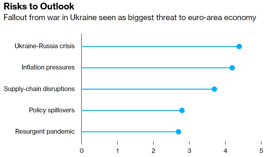 更重要的是欧洲央行的经济和通胀预测,预计今年和明年的通胀率将大幅上调,同时由于俄乌战争和亚洲的供应链瓶颈,经济扩张前景也将大幅减弱。