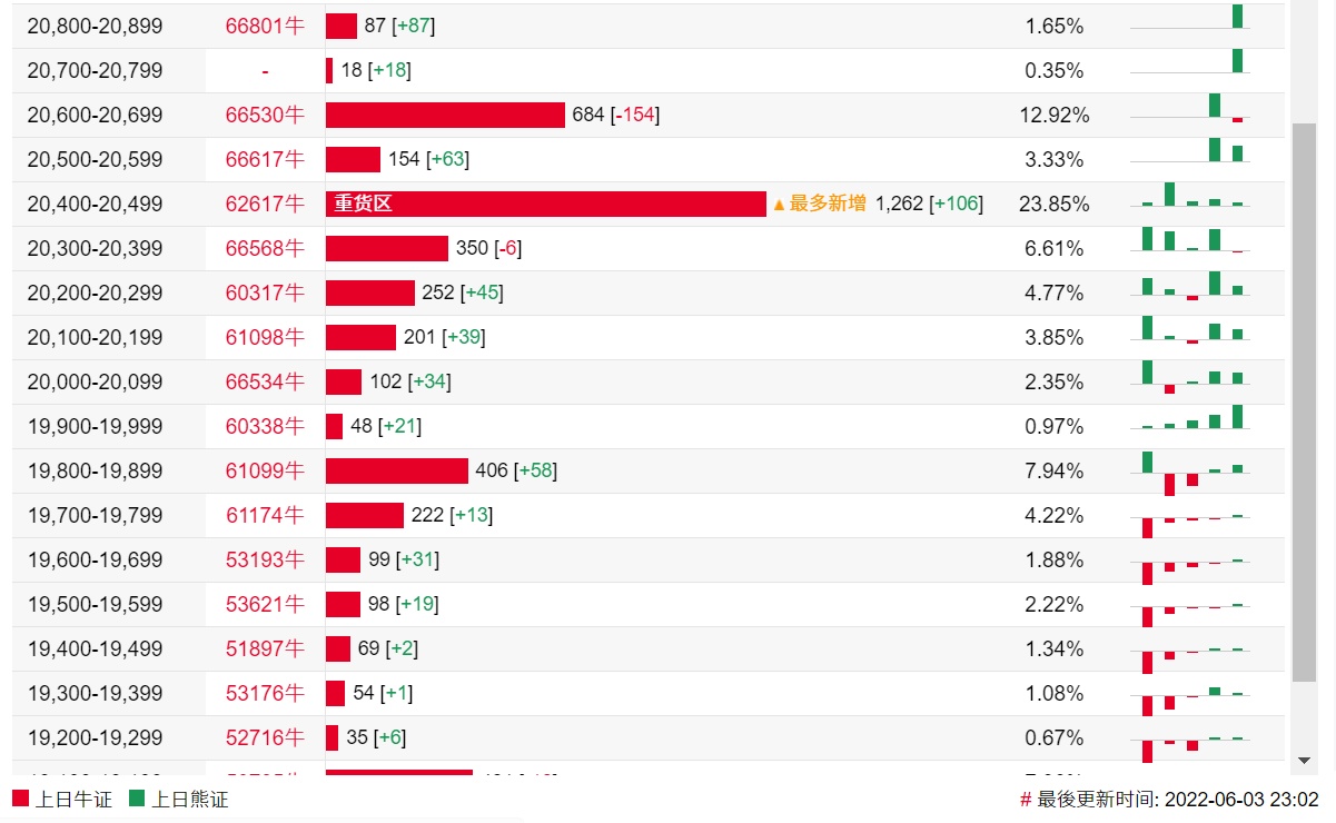 牛证街货重货区和最多新增都在20400-20499区间,该区间最新牛证数量为1262张,较上一交易日增加106张。