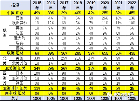 欧洲的插电混动份额从2019年的37%,上升到2020年的65%,又下降到2021年的56%的水平。2022年下降到43%,降幅较大。
