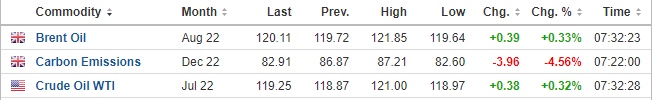 3. 截至发稿,WTI原油涨0.32%,报119.25美元/桶。布伦特原油涨0.33%,报120.11美元/桶。