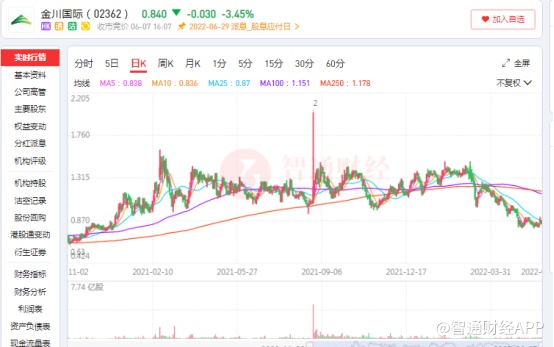 6月6日,金川国际股价涨8.43%,报0.9港元,总市值113.5亿港元。这次短暂的股价拉升,或受公司回购最多12.6亿股股份的消息带动。