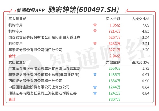 驰宏锌锗(600497.SH):受到众多机构青睐,今日共3个机构席位出现在龙虎榜单上,合计净买入2.1亿元,买五是知名游资的席位买入3271万元,当日净买入2.18亿元,该股今日放量涨停,突破前期高点6.08元需持续放量。