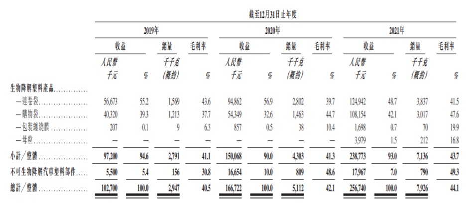 按弗若斯特沙利文报告所述,对中宝新材集团生物降解购物袋的需求主要受政策驱动。于营业纪录期间,生物降解塑料产品销售分别占其于2019财政年度、2020财政年度及 2021财政年度的收益总额约94.6%、90.0%及93.0%。2019财政年度至2021财政年度中宝新材集团的收益增加,主要是由于常客的销量增加。于2020财政年度,中宝新材集团的销售增加是由于生物降解连卷袋的销售大幅增长。