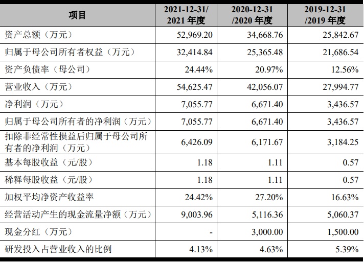 财务数据上,于2019年度、2020年度及2021年度,美农生物年度营业收入分别约为2.80亿元人民币、4.21亿元人民币、5.46亿元人民币。公司净利润分别约为3436.57万元人民币、6671.40万元人民币、7055.77万元人民币。