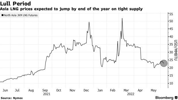 随着天然气进口国通常会在夏季囤积用于冬季的天然气供应,此举可能会加剧市场的担忧,即在欧洲地区的买家越来越多地摆脱对俄罗斯管道天然气依赖并与亚洲地区的买家对液化天然气进行竞争时,需求将超过供应并进一步抬升液化天然气价格。