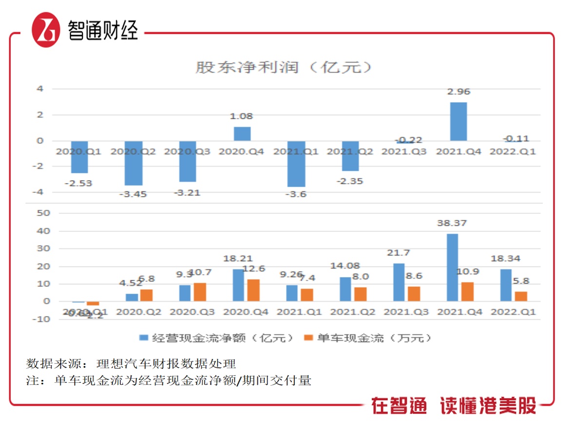 不过该公司并不着急将账面做成盈利,净利润在亏损盈利摇摆,但比例区间并不大,或通过费用调整进行做账。利润可以调整,但现金流却很真实,特别是经营现金流,该公司每个季度都保持了较为旺盛的经营现金流净额,2022年Q1为18.34亿元,单车产生经营现金流净额在5万元以上,Q1为5.8万元,相当于单车售价的16.6%。