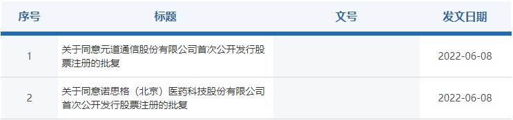 智通财经APP获悉,据证监会6月8日消息,证监会批复同意元道通信股份有限公司、诺思格(北京)医药科技股份有限公司创业板首次公开发行股票注册。
