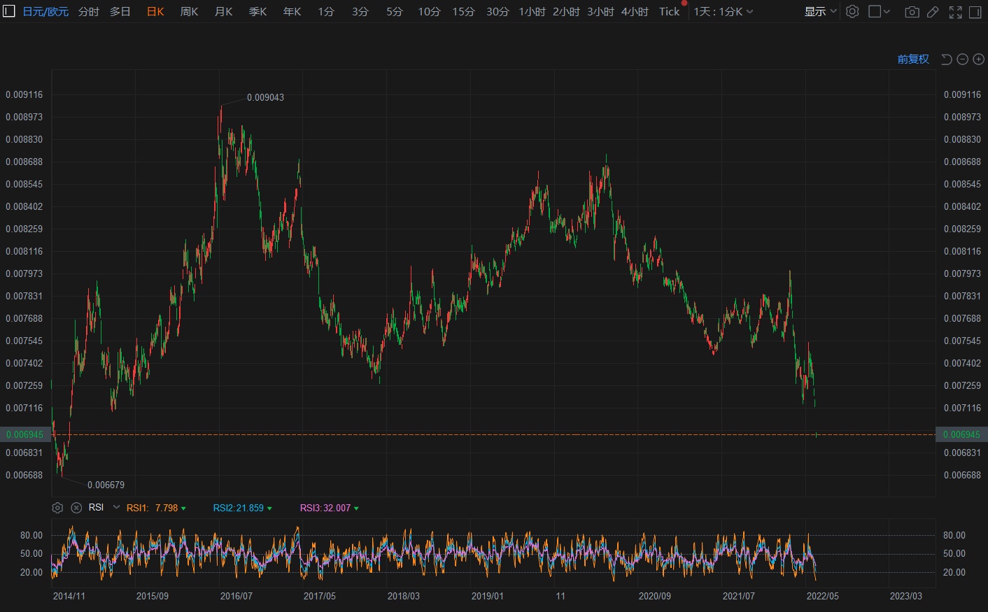 日元兑其他流动性较高货币汇率也面临着巨大压力。在欧洲央行即将采取强硬货币政策的这一预期提振之下,日元兑欧元汇率已跌至7年多来的低点。