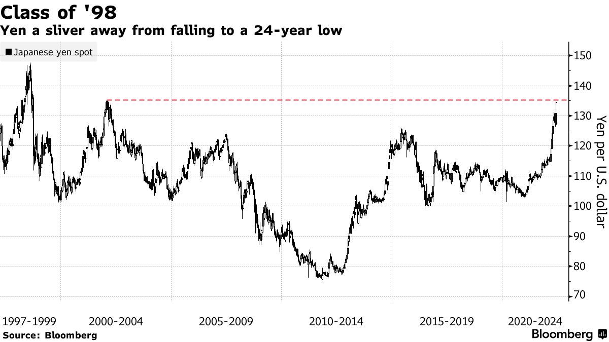 日元汇率距离24年来的最低点已经不远了