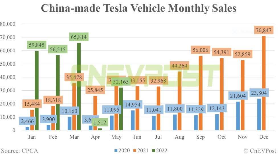 据悉,特斯拉上海工厂于4月19日复工,并于5月11日恢复出口。该工厂在5月份生产了33544辆汽车,较4月份增长212%。