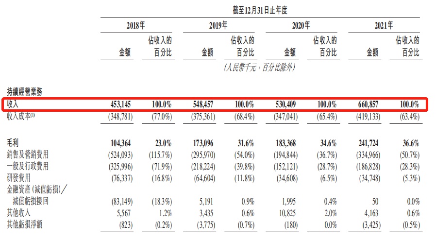 据招股书披露,2018年至2021年,该公司分别实现营收为4.531亿元、5.485亿元、5.304亿元、6.61亿元,除2020年营收稍有所下滑之外,其余几年均呈增长之势。而对于2020年营收下滑的表现,该公司也在招股书中直言表示,主要是由于疫情的负面影响以及中国内地在线同城物流市场的激烈竞争令平台上托运人活动减少。