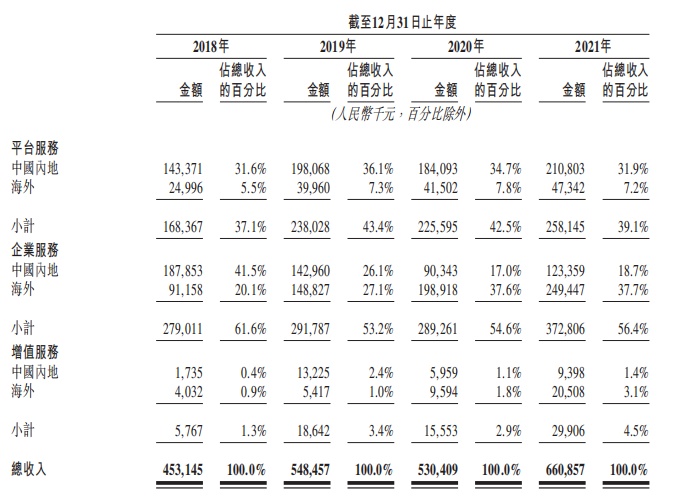 2021年,该公司来自平台服务的收入为2.58亿元,占总收入的比例为39.1%;来自企业服务的收入为3.73亿元,占总收入的比例为56.4%;来自增值服务的收入为0.299亿元,占总收入的比例为4.5%。基于此可知,目前快狗打车的主要收入来源还是来自企业服务,平台服务则次之。