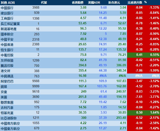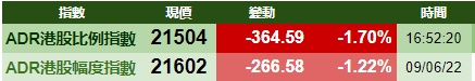 智通财经APP获悉,周四美股三大指数集体下跌,港股ADR指数下跌,按比例计算,收报21504点,较香港收市跌364.59点或1.70%。