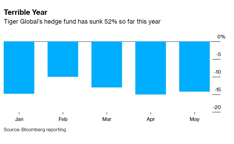据悉,截至今年4月份,重创科技股的老虎环球在今年的科技股抛售浪潮中,惨遭约170亿美元巨额亏损,这是该对冲基金有史以来最大规模亏损之一。