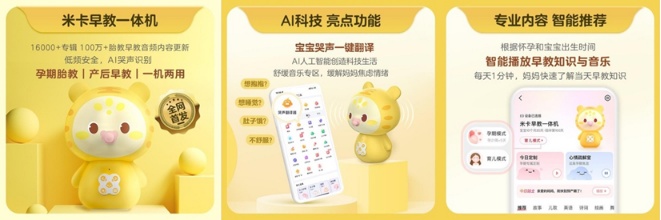 作为“内容+AIoT”产物,米卡早教一体机以宝宝树15年来积累的内容为核心,整合复星FC2M生态资源串联智能硬件构建多个场景化的智慧母婴生活体验,探索AIoT技术在母婴、家庭的广阔应用场景。而宝宝树另一款C2M自研产品孺期补水舒润沁柔面部保湿系列,则是由平台妈妈用户孕育期护肤需求痛点出发,链接国内前沿美妆研发技术打造而成,以期有效呵护孕期肌肤的“小情绪”。