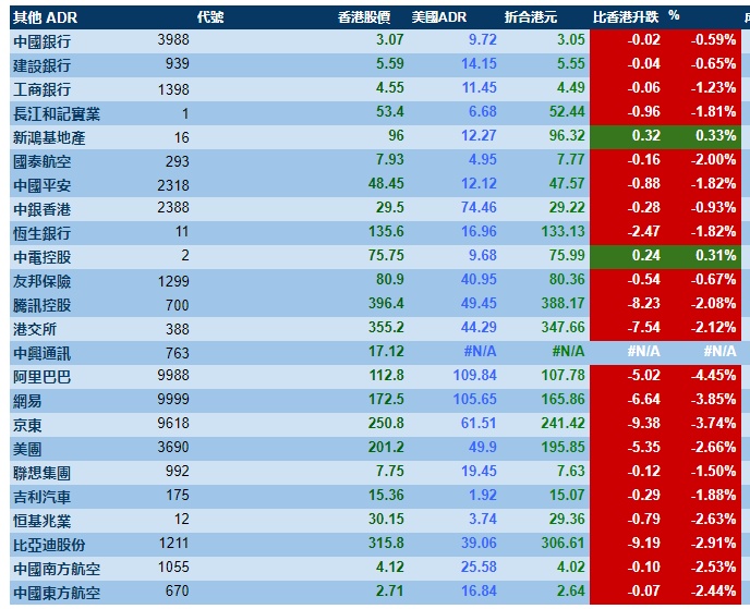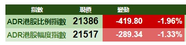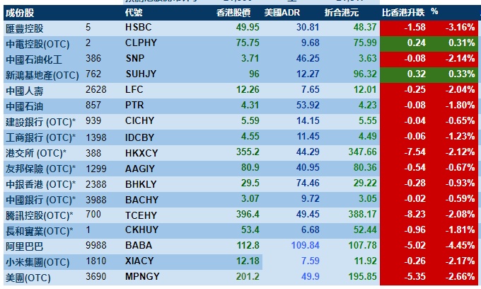 智通财经APP获悉,周五美股三大指数集体下跌,港股ADR指数下跌,按比例计算,收报21386点,较香港收市跌419.80点或1.96%。
