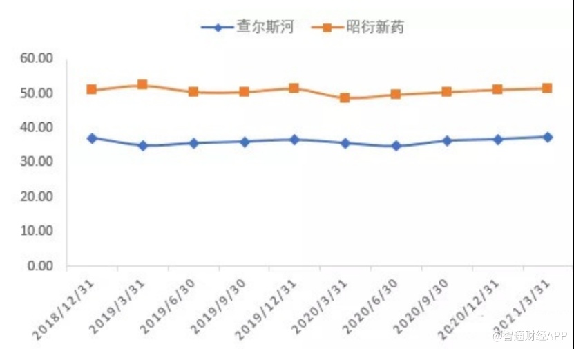 昭衍新药订单价格是成本加成法,毛利率基本维持在50%以上,每年略有波动。加之由于国内人力、材料采购成本偏低,以及昭衍自有灵长类动物,所以其近两年的毛利率一直高于查尔斯河。