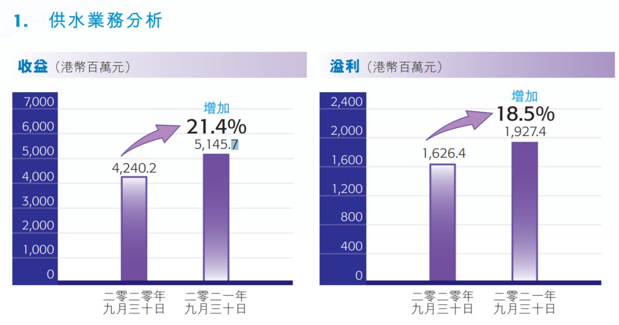 作为国内领先的市场化跨区域供水运营商,中国水务是唯一一家以供水业务为主业的香港上市水务公司,其供水业务覆盖中国20个省,包括3个直辖市及超过100个县市,接驳用户为696万,覆盖人口超过3000万。2021财年时,中国水务的售水量达11.85亿吨,在主要同类上市企业中排名第一位。
