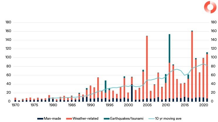 除了美国以外,全球其他地区的保险损失也导致保险证券收益率的走高。2019年及2020年,疫情在多个领域造成了保险损失。2021年的情况也并未好转,冬季风暴“乌里”袭击北美、夏秋欧洲遭遇极端强降水、飓风“艾达”等都带来了巨大的损失。