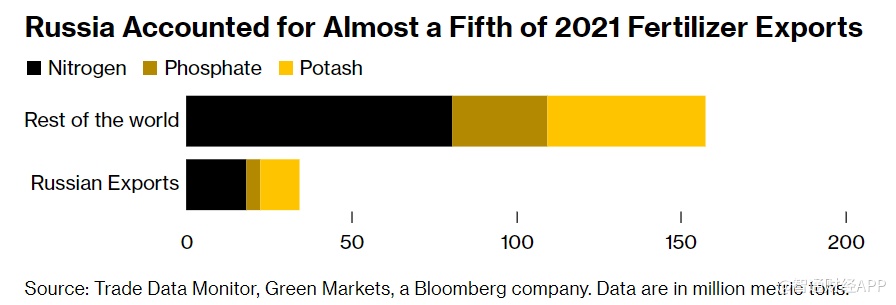 俄罗斯是化肥的主要全球供应商。欧盟和美国在对俄罗斯贸易的限制中加入了豁免条款,允许俄罗斯进行化肥贸易。但许多航运公司、银行和保险公司一直远离这项交易,因为他们担心自己可能在不经意间违反规则。俄罗斯化肥出口今年下降了24%。