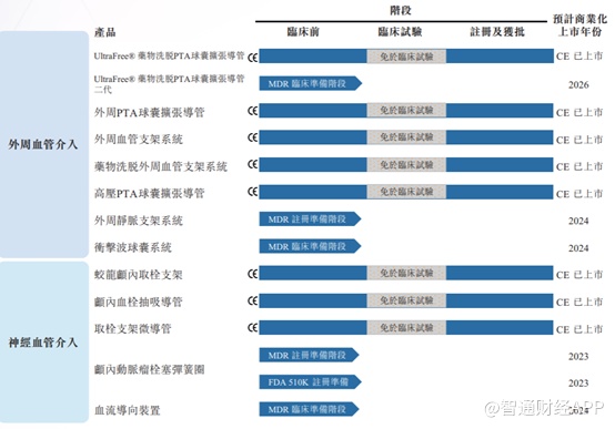 作为一家医疗器械企业,归创通桥共有55款已上市/在研产品组合,产品主要覆盖神经血管介入和外周血管介入。截至2021年12月31日,归创通桥共有14款产品在中国取得国家药监局注册批准,8款产品取得CE标志。