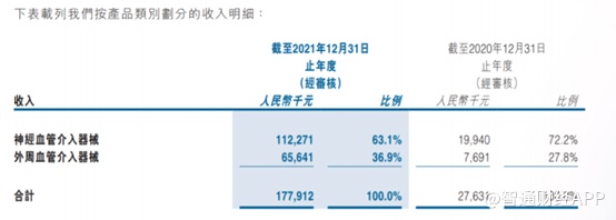 其中神经血管介入产品收入达1.12亿元,同比增长463.0%,占比达到63.1%;外周血管介入产品达6564万元,同比增长753.5%,占比36.9%。