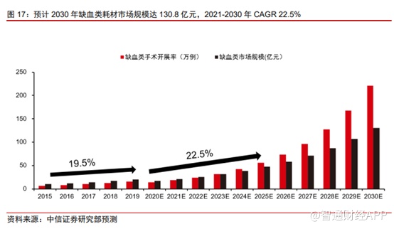 此外,卫健委脑防委要求各级医疗机构卒中中心的建设快速发展,国内的缺血性卒中耗材市场规模也随之扩大。2019年我国缺血性卒中类耗材市场规模约20.7亿元,2015-2019 年CAGR 约为19.5%。2020年受新冠疫情冲击市场规模下滑至17.2亿元。随着国内疫情基本得到有效控制、介入诊疗的普及度提升、医疗消费升级等因素,中信证券预计2021-2030年CAGR将增至 22.5%,2025年市场规模将达47.4亿元,2030年将达130.8亿元。