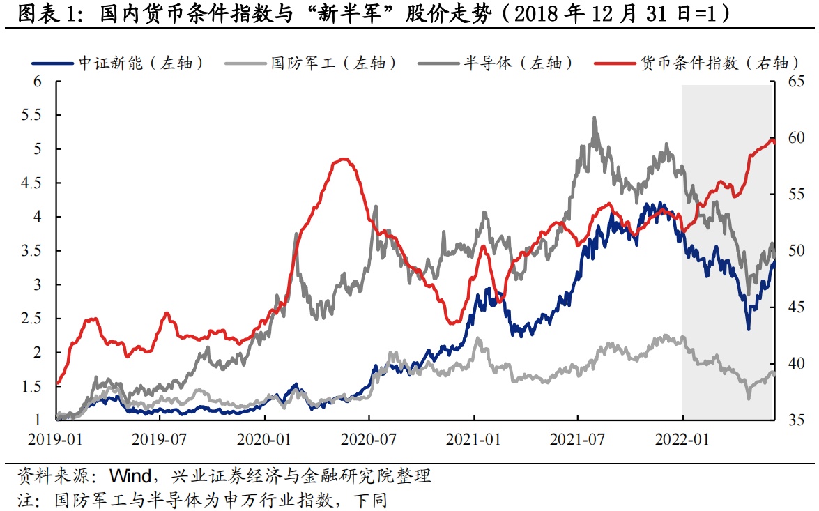 未来一段时间,国内宏观流动性将继续维持宽松,而美债利率的加速上行或将导致“新半军”阶段性进入震荡整固。随着国内稳增长政策持续发力、LPR利率调降,货币条件指数已升至近两年高位,国内宏观流动性将继续维持宽松,依然不会对“新半军”股价构成制约;而随着美国通胀再度攀升,且临近6月加息窗口,联储“激进加息”预期升温推动美债利率短期冲高,或将对“新半军”股价再度形成压制,“新半军”或阶段性进入震荡整固,短期可观察6月联储议息会议后表态及加息落地后市场反映。
